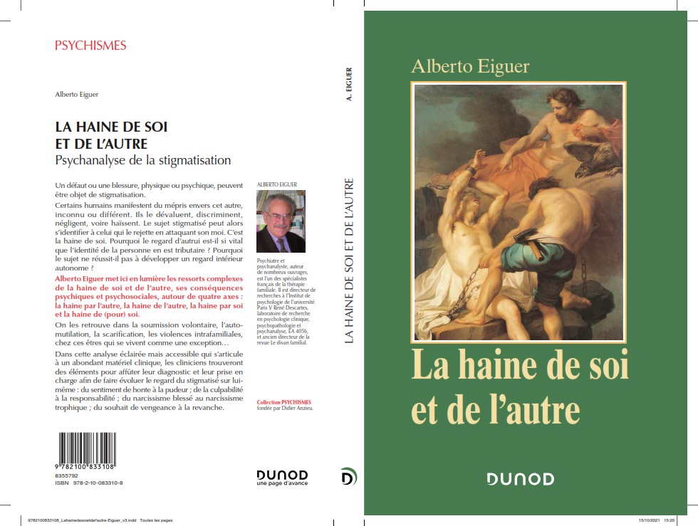 Alberto Eiguer met ici en lumière les ressorts complexes de la haine de soi et de l’autre, ses conséquences psychiques et psychosociales, autour de quatre axes : la haine par l’autre, la haine de l’autre, la haine par soi et la haine de (pour) soi. On les retrouve dans la servilité volontaire, l’automutilation, la scarification, les violences intrafamiliales, chez ces êtres qui se vivent comme une exception…